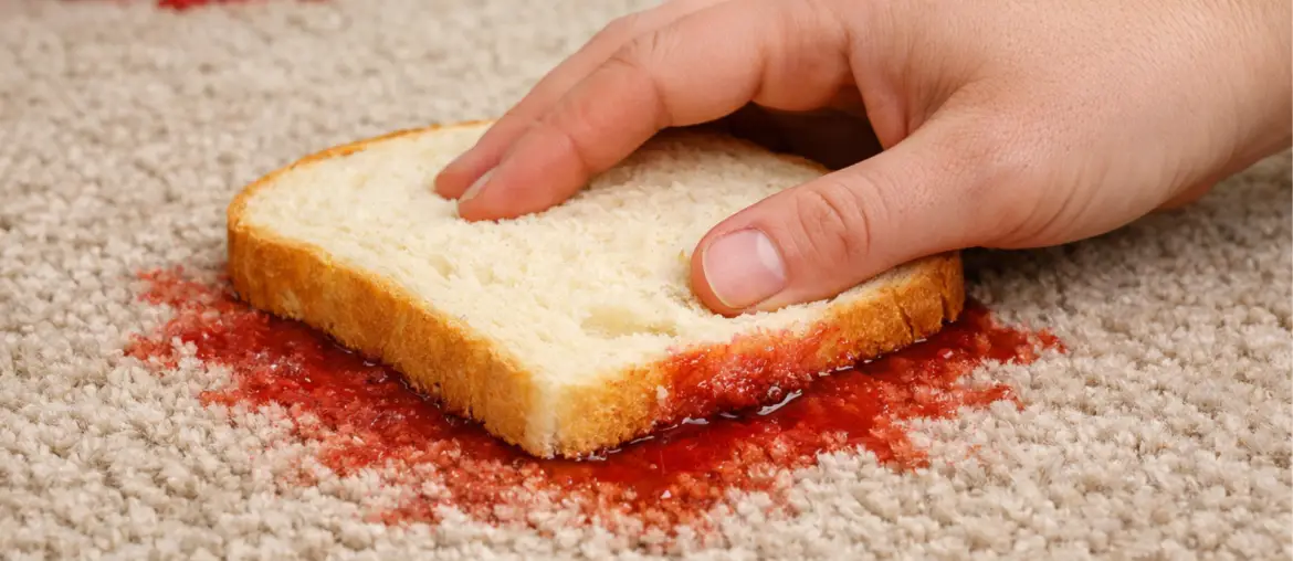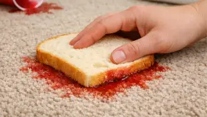 Press fresh white bread onto the stain and dab repeatedly. Replace with clean pieces as needed until the spill is absorbed. Ideal for juice, soda, or water-based spills.