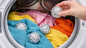 Aluminum foil reduces static, which often makes clothes feel stiff and clingy. I roll foil into a tight ball and toss it directly into the dryer. As clothes tumble, the foil discharges static electricity naturally.
