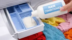 Hair conditioner softens clothes the same way it softens hair—by smoothing fibers and reducing friction. I mix one tablespoon of conditioner with one cup of warm water and add it to the fabric softener compartment.