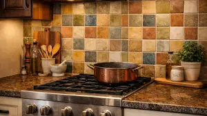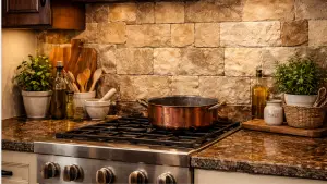 They bring in natural texture and make your space feel grounded and rich without trying too hard. Even better, many stone tiles are naturally resistant to stains, which makes them practical for everyday cooking.