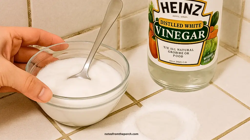 Baking soda is a mild abrasive, making it perfect for scrubbing away grime without scratching tiles. It also neutralizes odors and brightens surfaces.