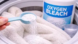 Oxygen bleach is a gentler alternative that lifts stains without weakening fabric. Unlike chlorine bleach, it’s color-safe and fiber-friendly.