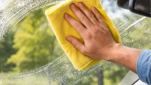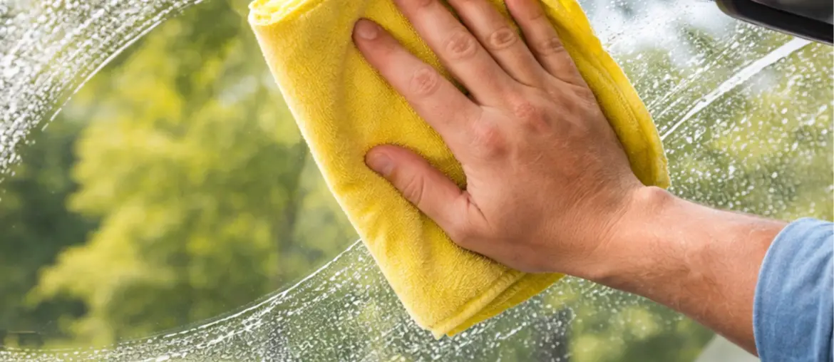 - Use the microfiber cloth to wipe the windshield.