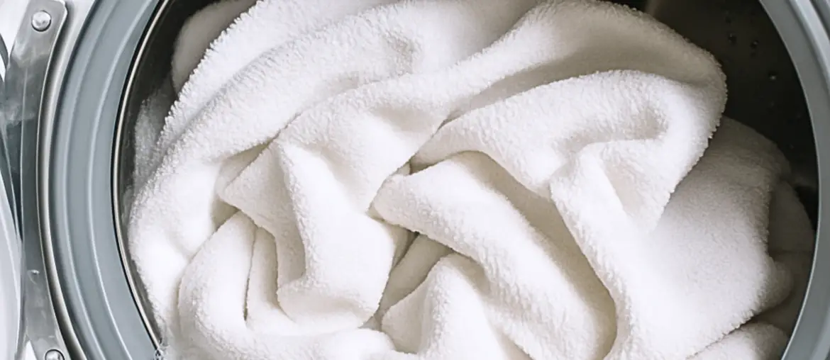 If you don’t have time to soak your washcloths or don’t want to use a bucket, no worries — your washing machine can handle the job just fine. Toss the white washcloths into the washer by themselves or with other white towels. Add your favorite detergent, then pour ½ cup of baking soda directly into the drum to boost cleaning power and remove odors. Next, add ½ cup of white vinegar to the fabric softener compartment — this will help dissolve residue, brighten whites, and naturally soften the fabric. Run a hot water cycle, as heat helps lift oils and kill bacteria. Once the cycle finishes, give your washcloths a good shake before drying so they stay fluffy and fresh.